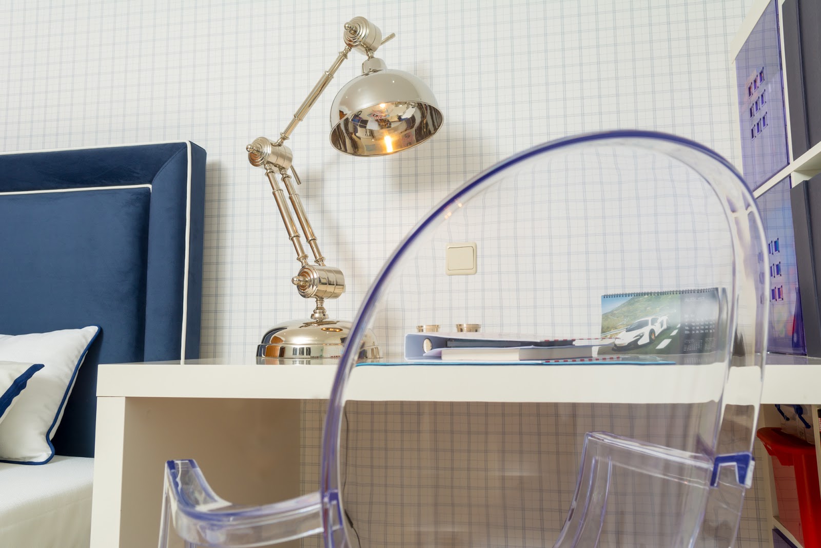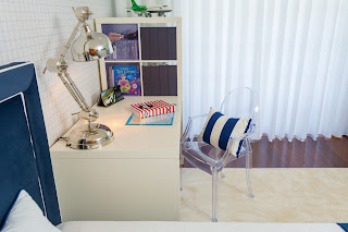 Hoje é dia de mostrar uns dos nossos últimos trabalhos, um quarto jovem , com cama em azul e apontamentos elegantes.
