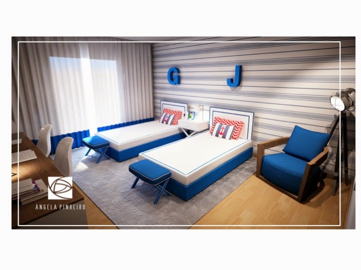 Queria o tema Navy, algo relacionado com o mar, com azuis e vermelhos.